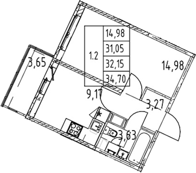 - Площадь кухни9,17 м2