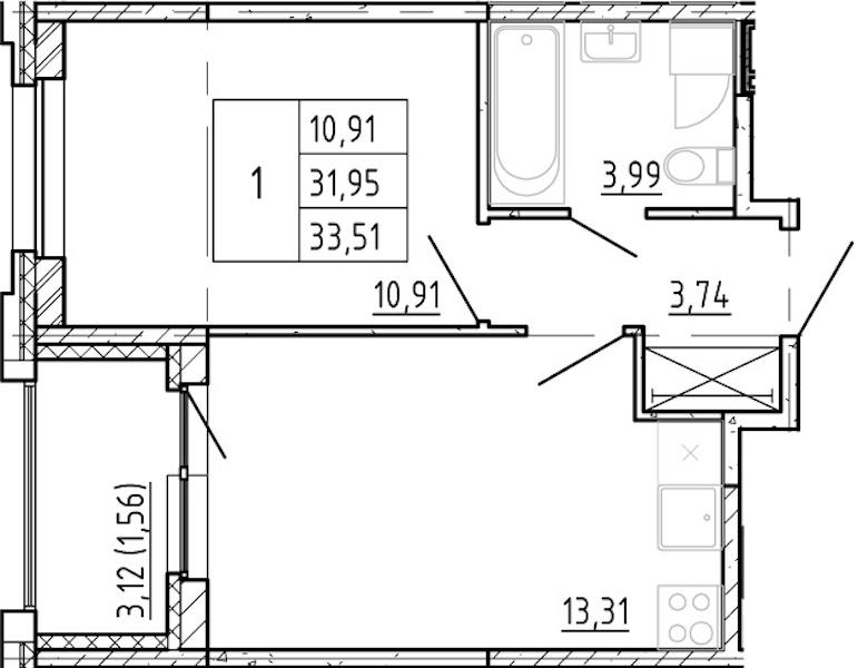 - Площадь31,95 м2