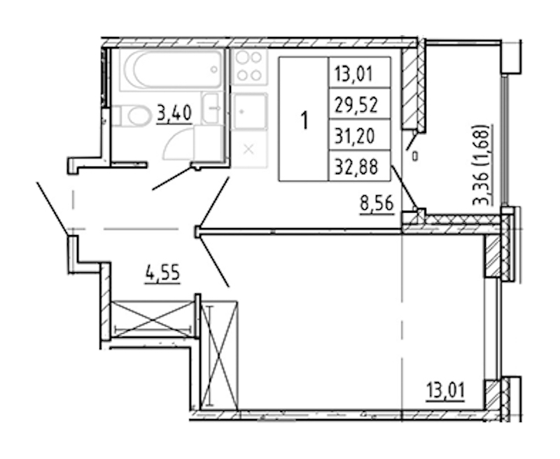 Однокомнатная квартира на 11-ом этаже 29,52 кв.м