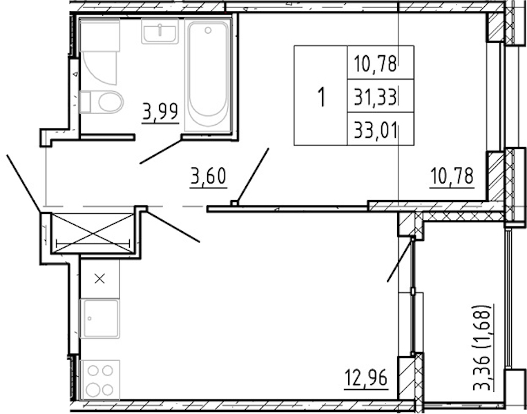• Площадь31,33 м2