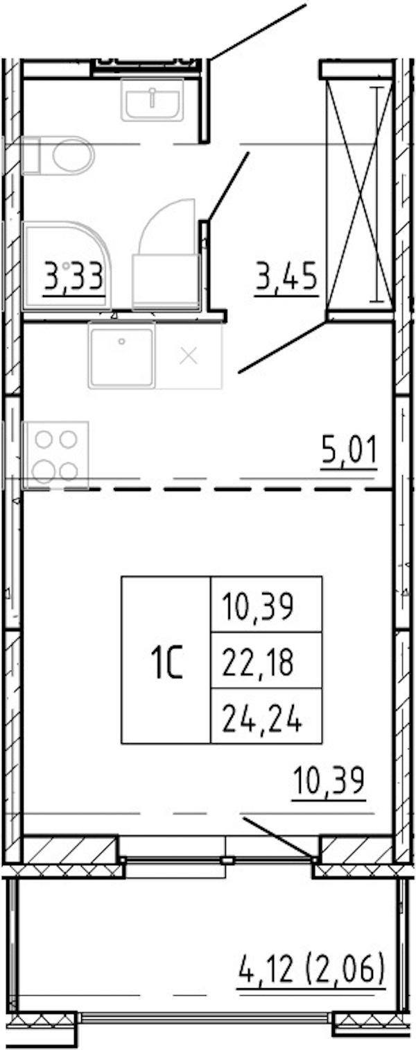 • Площадь22,18 м2