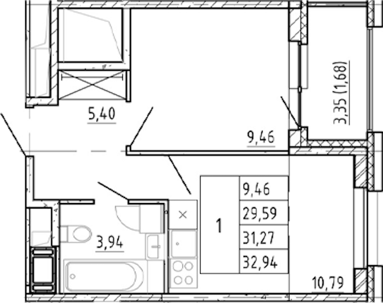 - Площадь29,59 м2