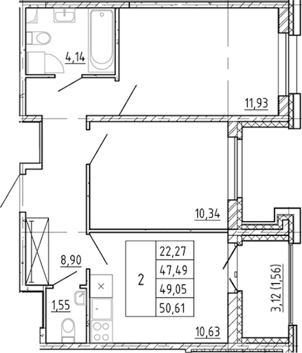 - Площадь47,49 м2