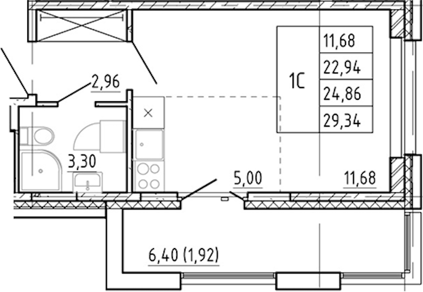 Квартира-студия на 4-ом этаже 22,94 кв.м