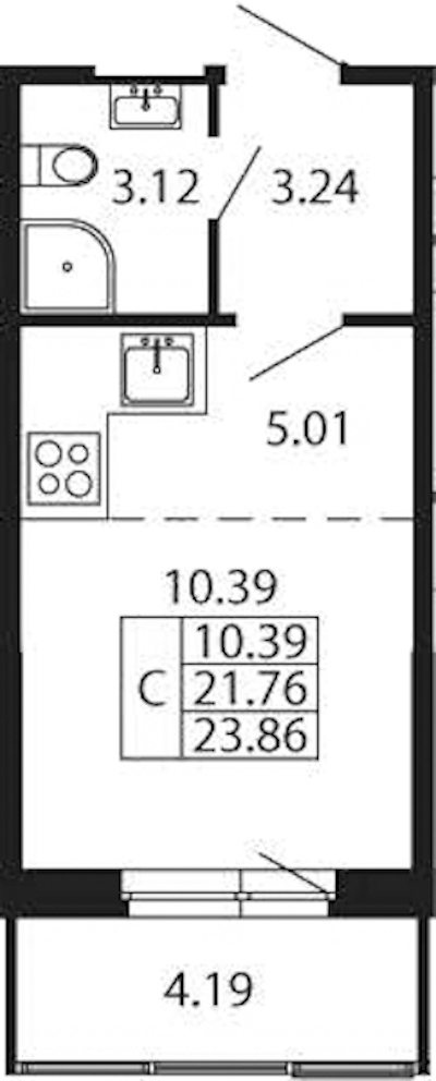 Квартира-студия на 8-ом этаже 21,76 кв.м