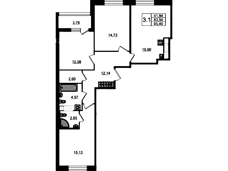 Трёхкомнатная квартира на 10-ом этаже 81,2 кв.м