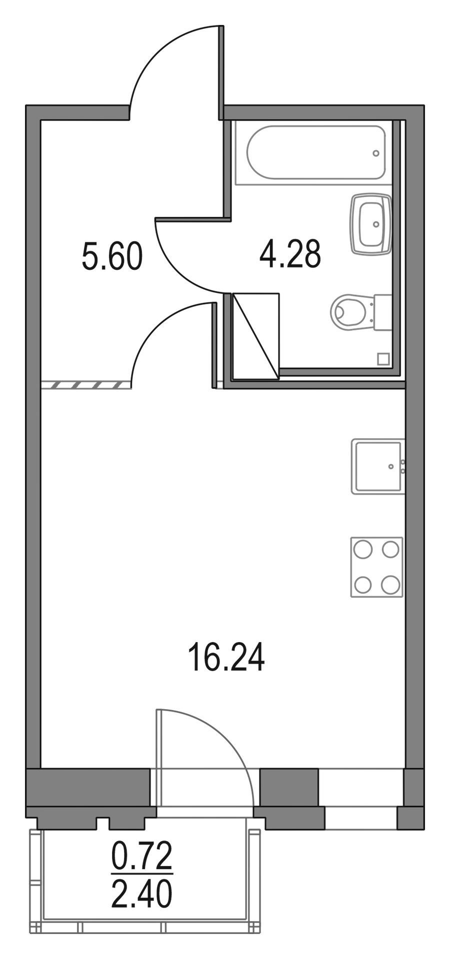 Квартира-студия на 9-ом этаже 26,12 кв.м