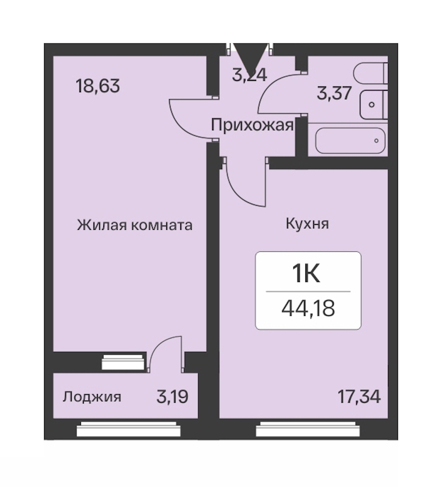 Однокомнатная квартира на 10-ом этаже 44,3 кв.м