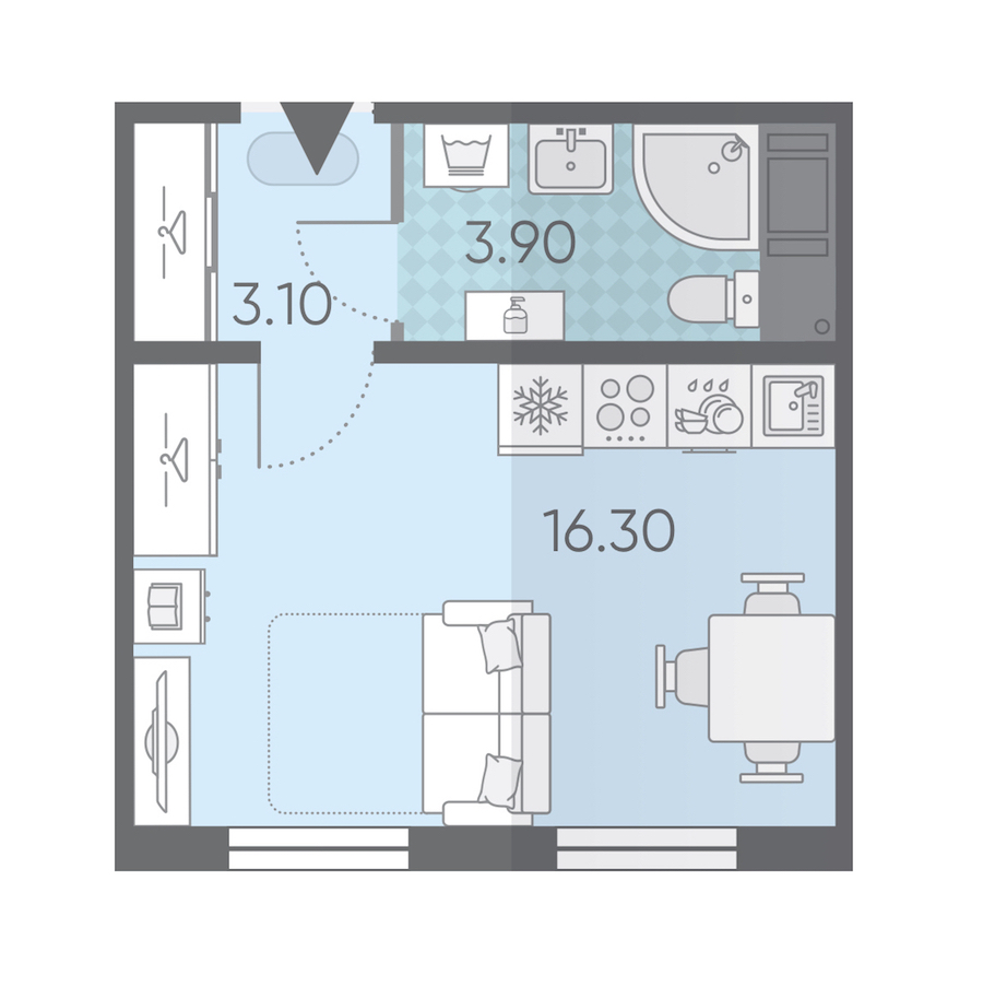 Квартира-студия на 15-ом этаже 23,3 кв.м