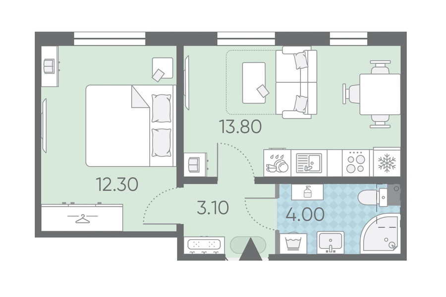 - Площадь кухни13,8 м2