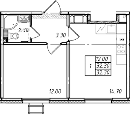 • Площадь32,3 м2
