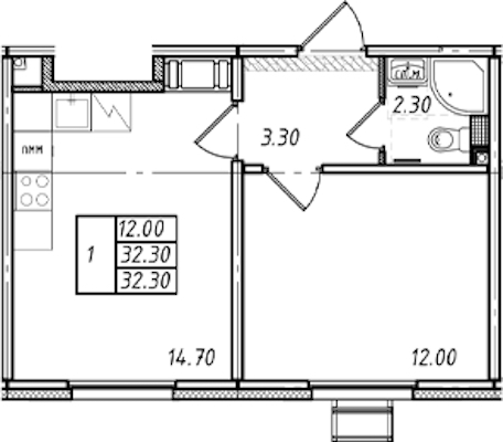 Однокомнатная квартира на 3-ем этаже 32,3 кв.м