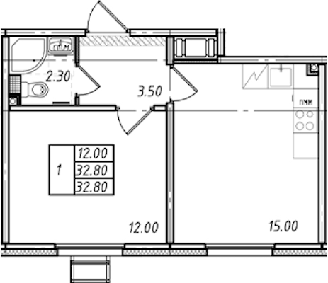 Однокомнатная квартира на 8-ом этаже 32,8 кв.м