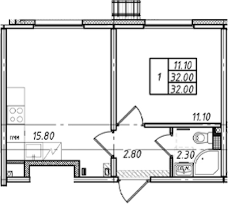 • Площадь32 м2