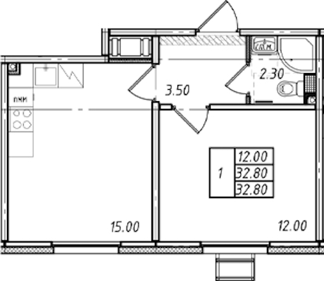 • Площадь32,8 м2