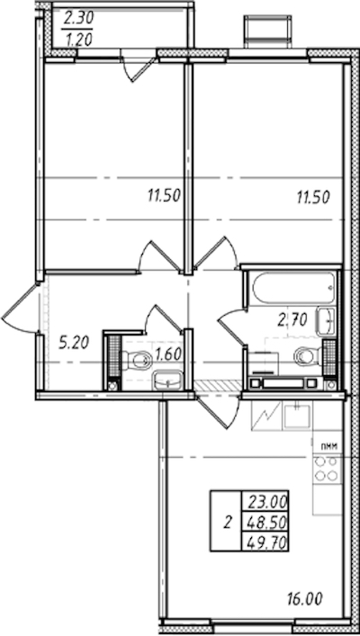 - Площадь49,7 м2