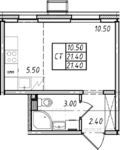 Квартира-студия на 1-ом этаже 21,4 кв.м