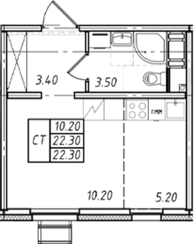 • Площадь22,3 м2