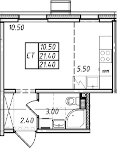 - Площадь21,4 м2