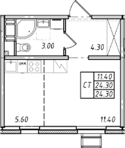 Квартира-студия на 7-ом этаже 24,3 кв.м