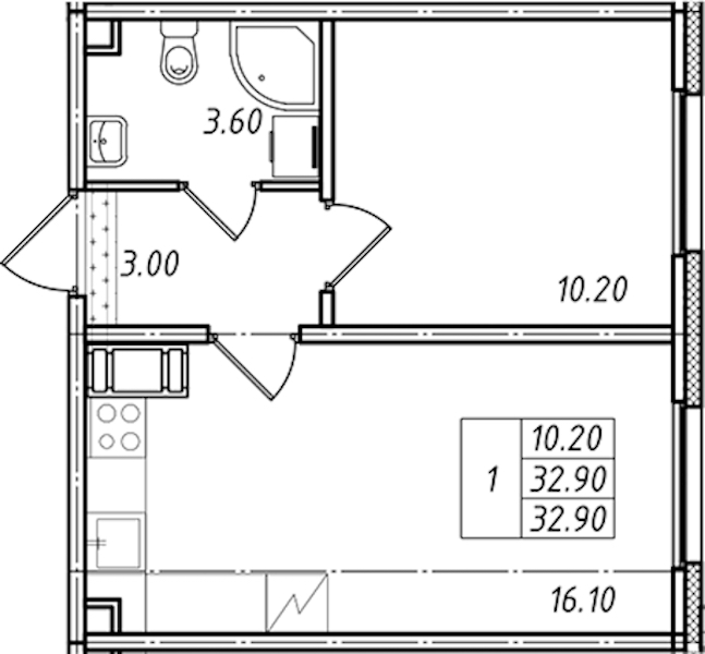 • Площадь32,9 м2