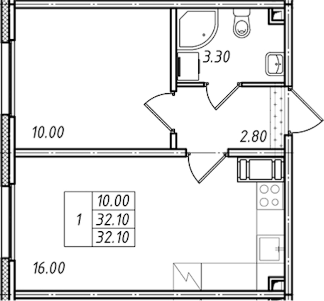 • Площадь32,1 м2