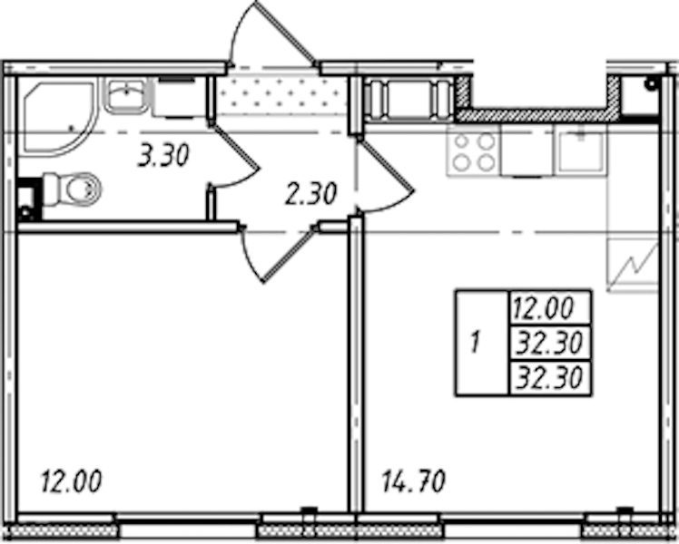 - Площадь32,3 м2