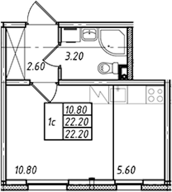 - Площадь22,2 м2