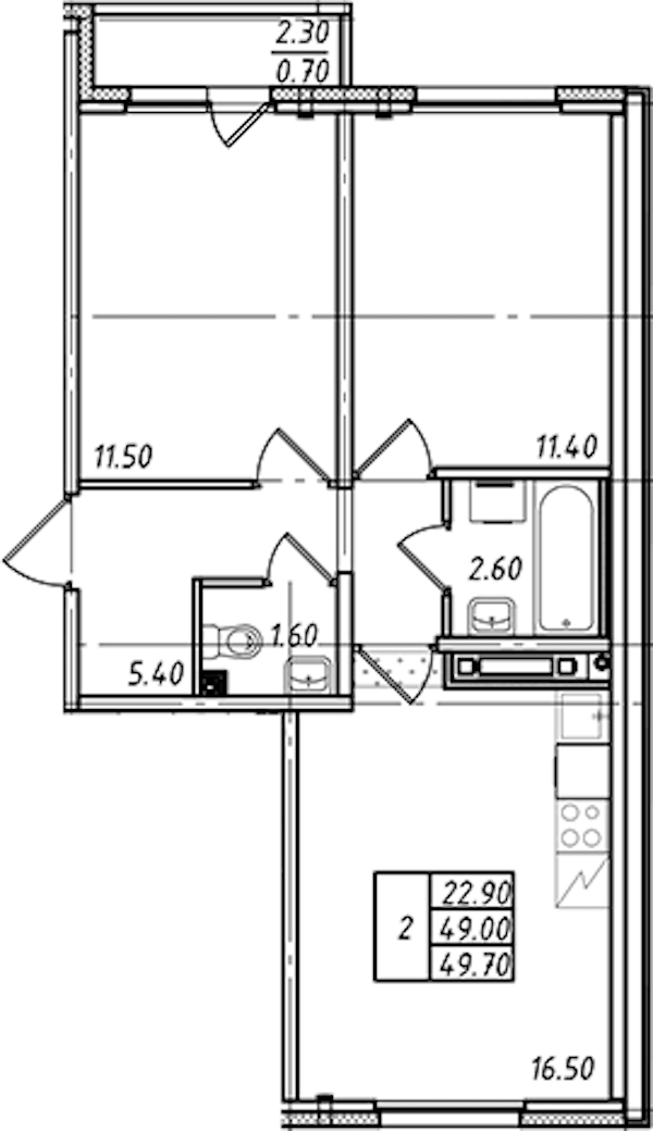 Двухкомнатная квартира на 10-ом этаже 49,7 кв.м