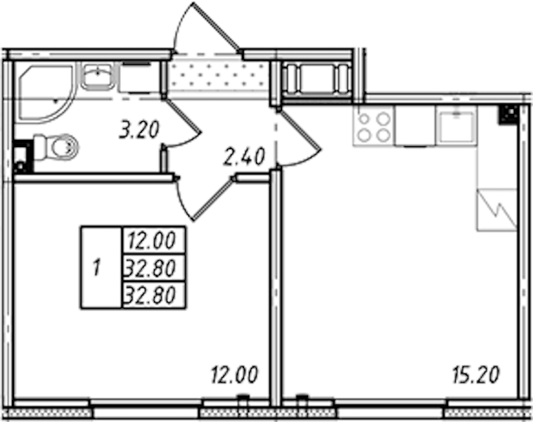 - Площадь32,8 м2