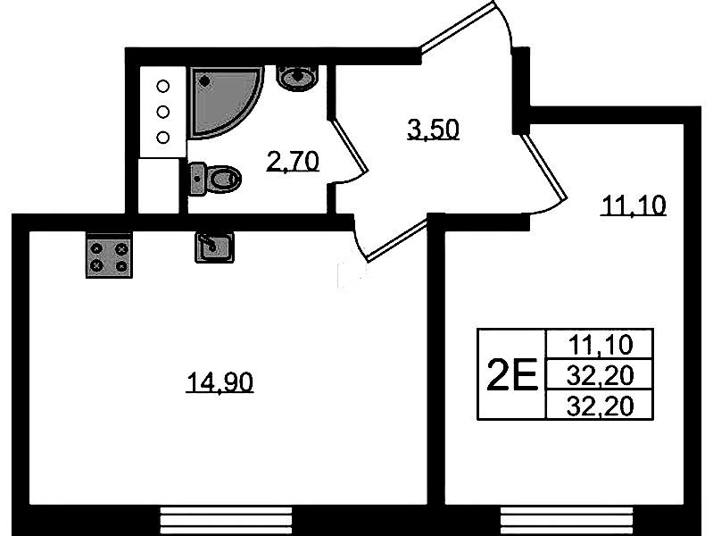 • Площадь32,2 м2
