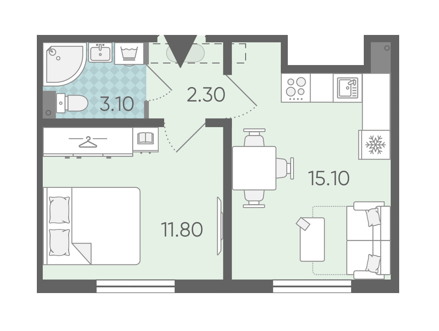 • Площадь32,3 м2