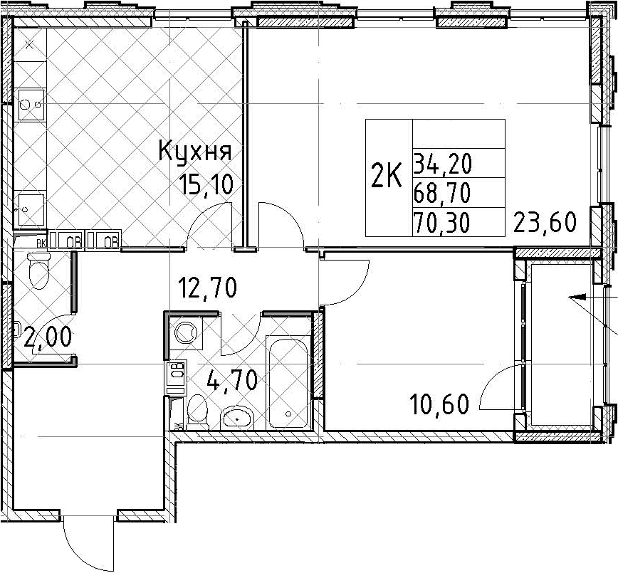 • Площадь70,3 м2