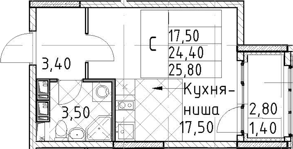 - Площадь25,8 м2