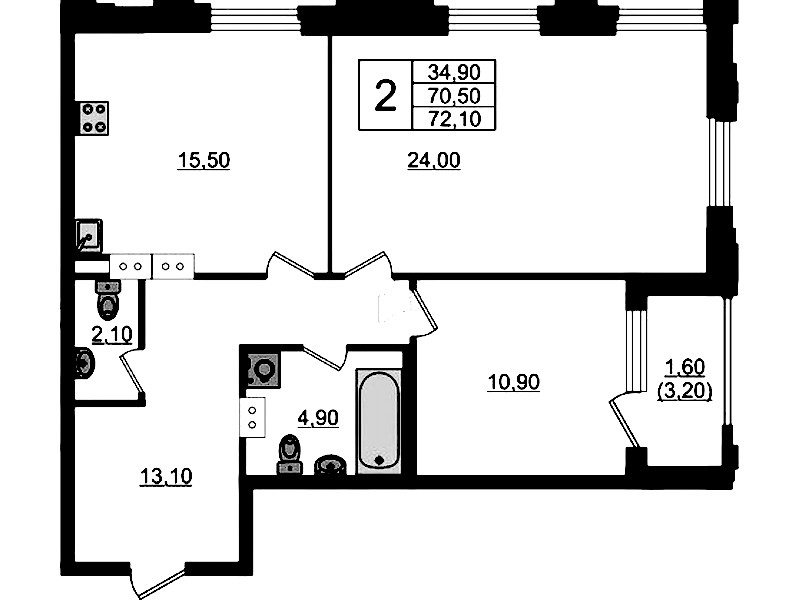 - Площадь72,1 м2
