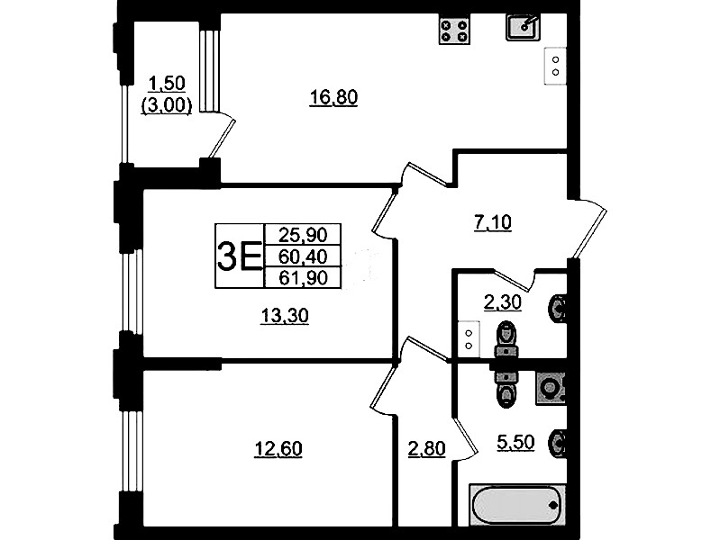 • Площадь61,9 м2