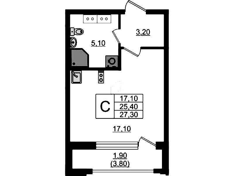 - Площадь27,3 м2