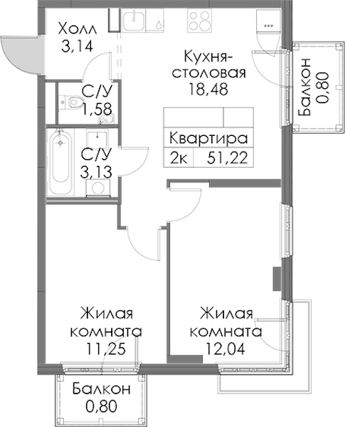 • Площадь51,22 м2