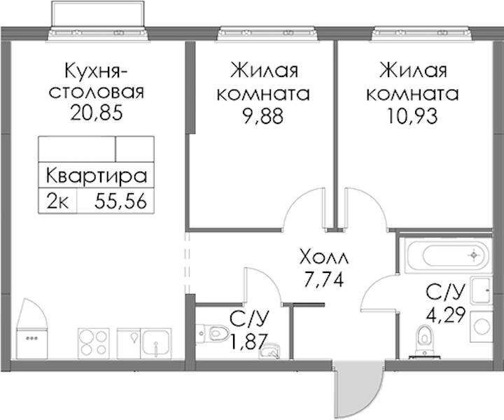 - Площадь55,56 м2