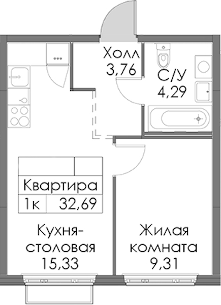 - Площадь32,69 м2