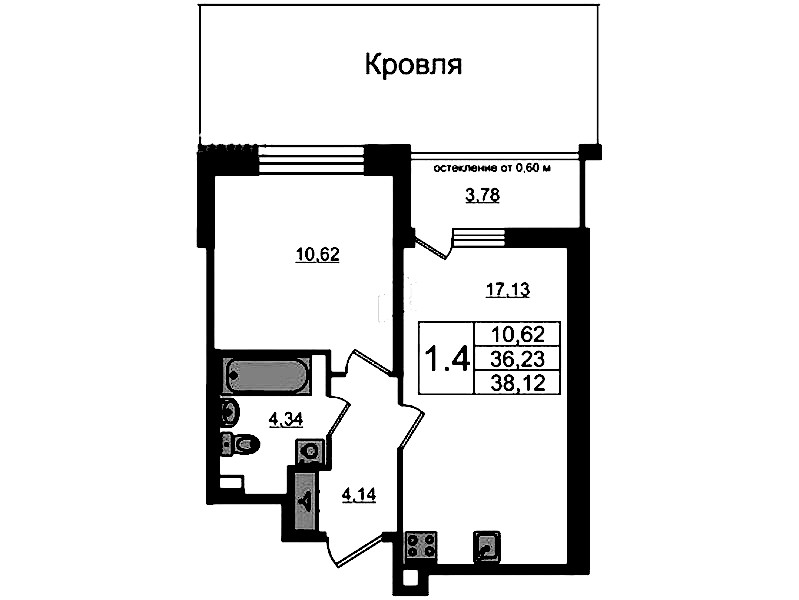 Однокомнатная квартира на 3-ем этаже 36,23 кв.м
