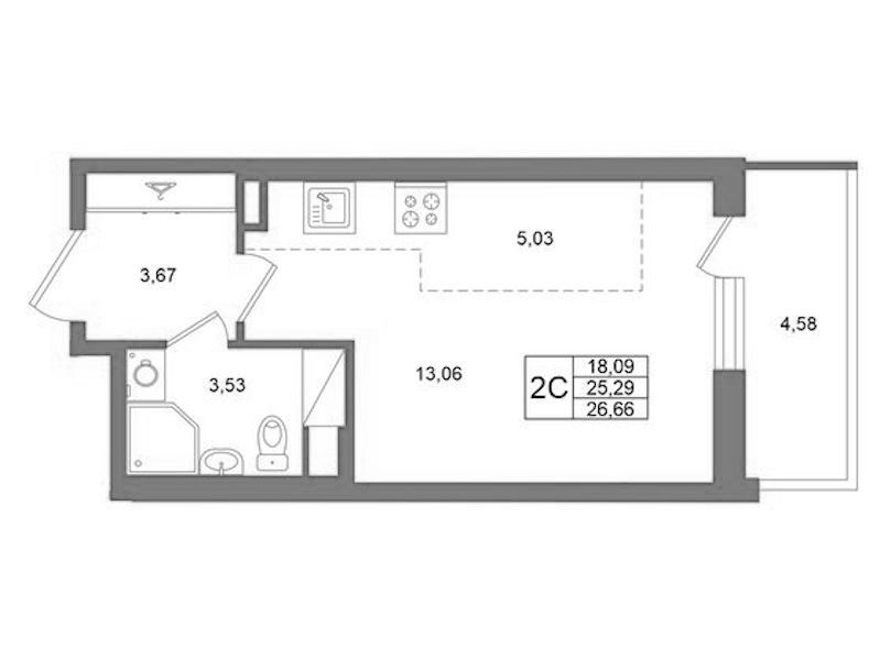 Квартира-студия на 5-ом этаже 25,29 кв.м