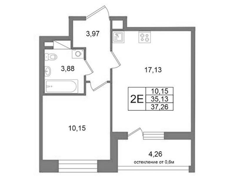Однокомнатная квартира на 4-ом этаже 35,13 кв.м