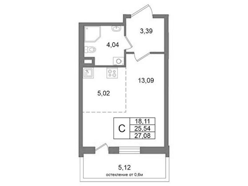 - Площадь25,54 м2