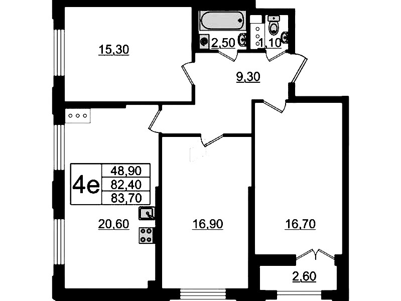Трёхкомнатная квартира на 13-ом этаже 83,7 кв.м