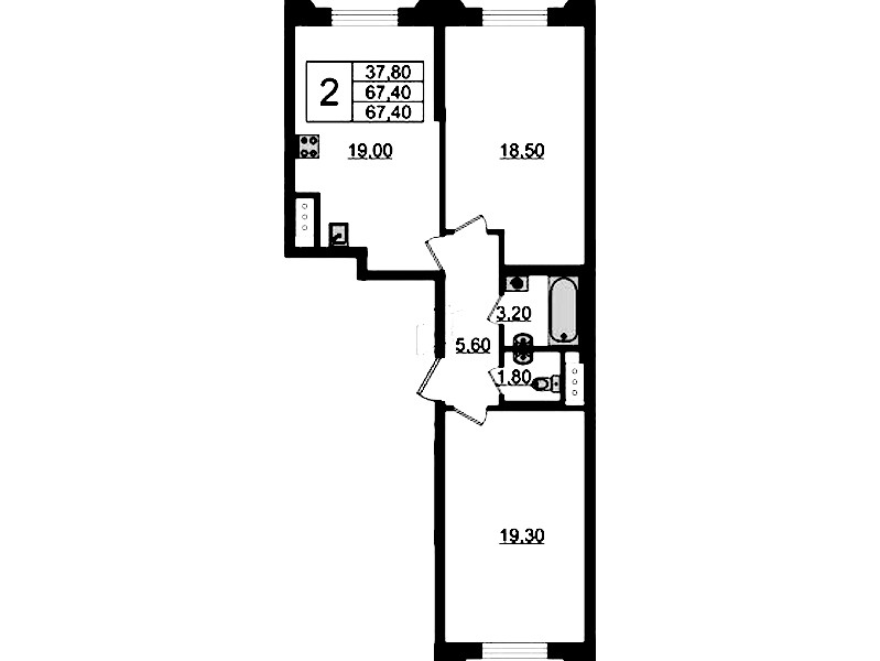 • Площадь67,4 м2
