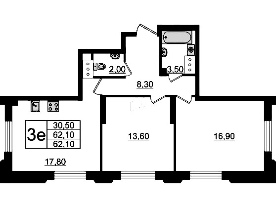 - Площадь62,1 м2