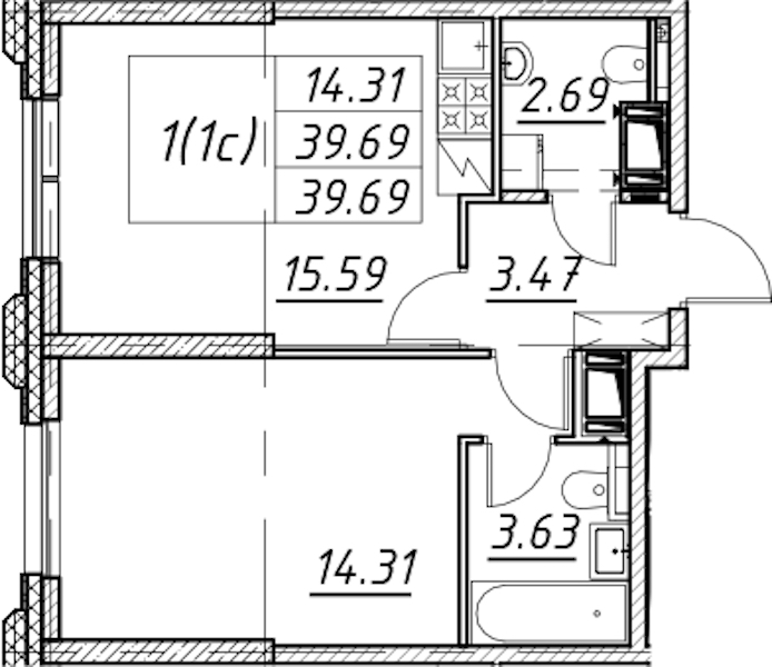 - Площадь39,69 м2