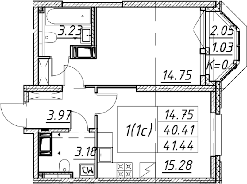 • Площадь41,44 м2