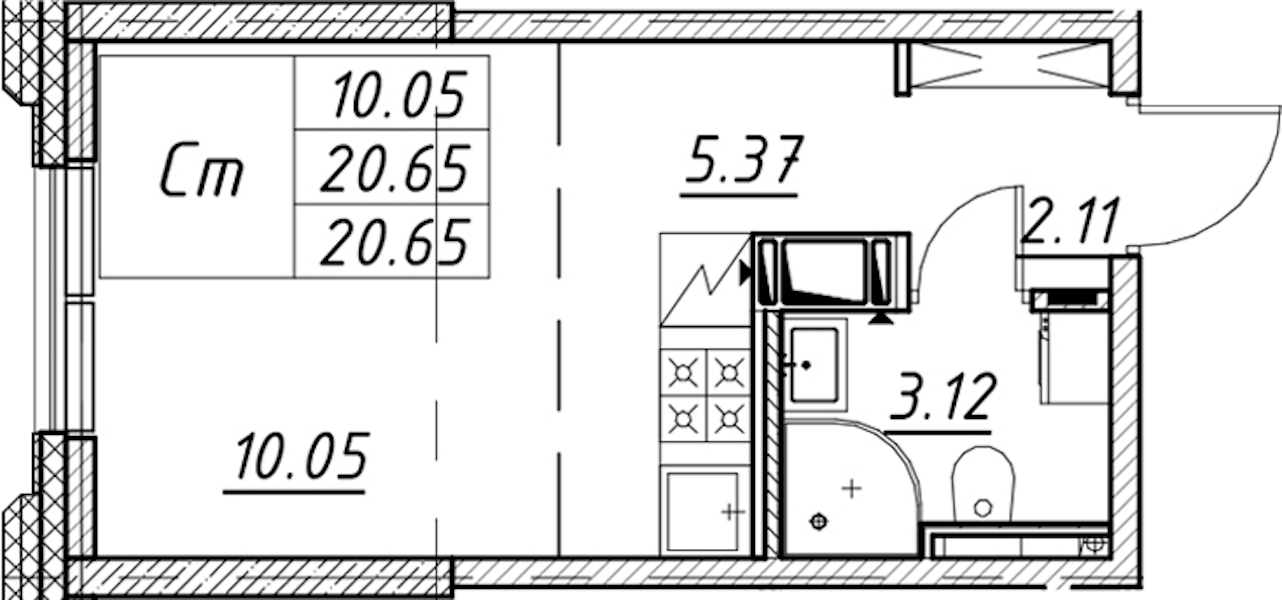 Квартира-студия на 4-ом этаже 20,65 кв.м
